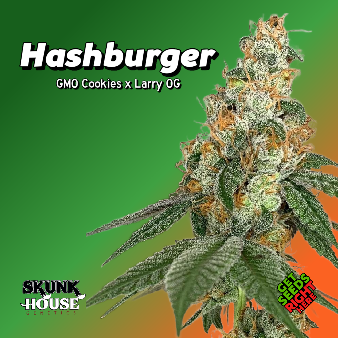 Who created Hashburger? Hashburger was bred by Skunk House Genetics, known for elite hash cultivars and exotic gas-heavy crosses.