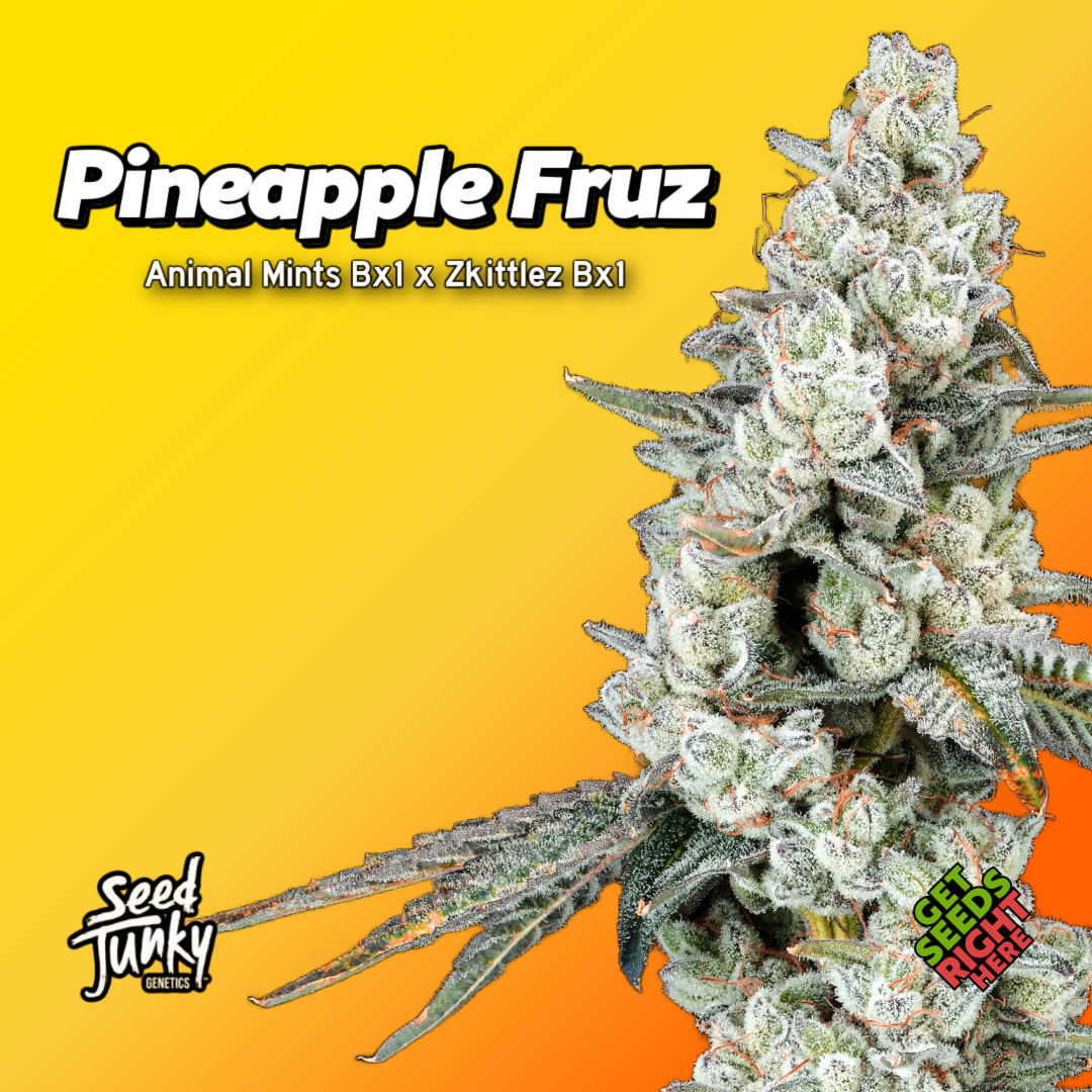 Pineapple Fruz strain guide: Everything you need to know about this creamy, tropical hybrid from Seed Junky Genetics. Bred from Animal Mints bx × Zkittlez bx, this cultivar fuses dessert sweetness with island brightness. In this complete clone grow guide, we’ll explore its lineage, terpene profile, cultivation behavior, and high-end bag appeal. If you’re after exotic flavor, vibrant resin, and candy-pineapple vibes, Pineapple Fruz delivers in full color.