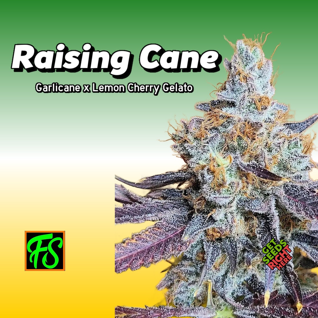 “Raising Cane Cannabis Clones is an exotic, terpene-rich hybrid bred by FS Genetics, combining Garlicane x Lemon Cherry Gelato. This strain fuses funky garlic gas with sweet cherry and creamy citrus flavors, delivering a complex, bold aroma and powerful effects. With heavy resin production and deep purple hues, Raising Cane is a top-tier choice for extraction artists, connoisseurs, and high-THC enthusiasts.