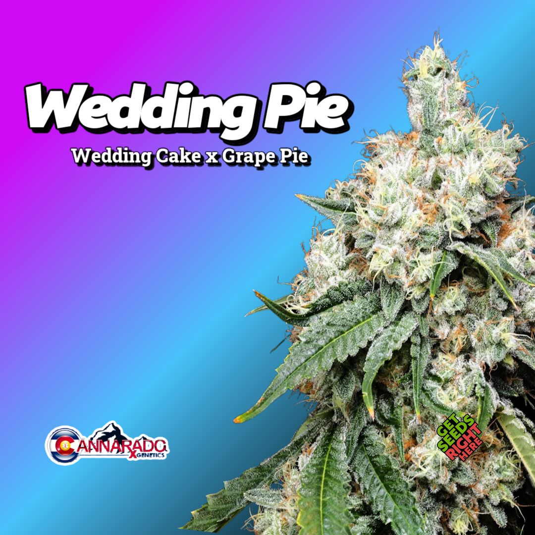 Who bred Wedding Pie? Cannarado Genetics created it by crossing Wedding Cake with Grape Pie.
