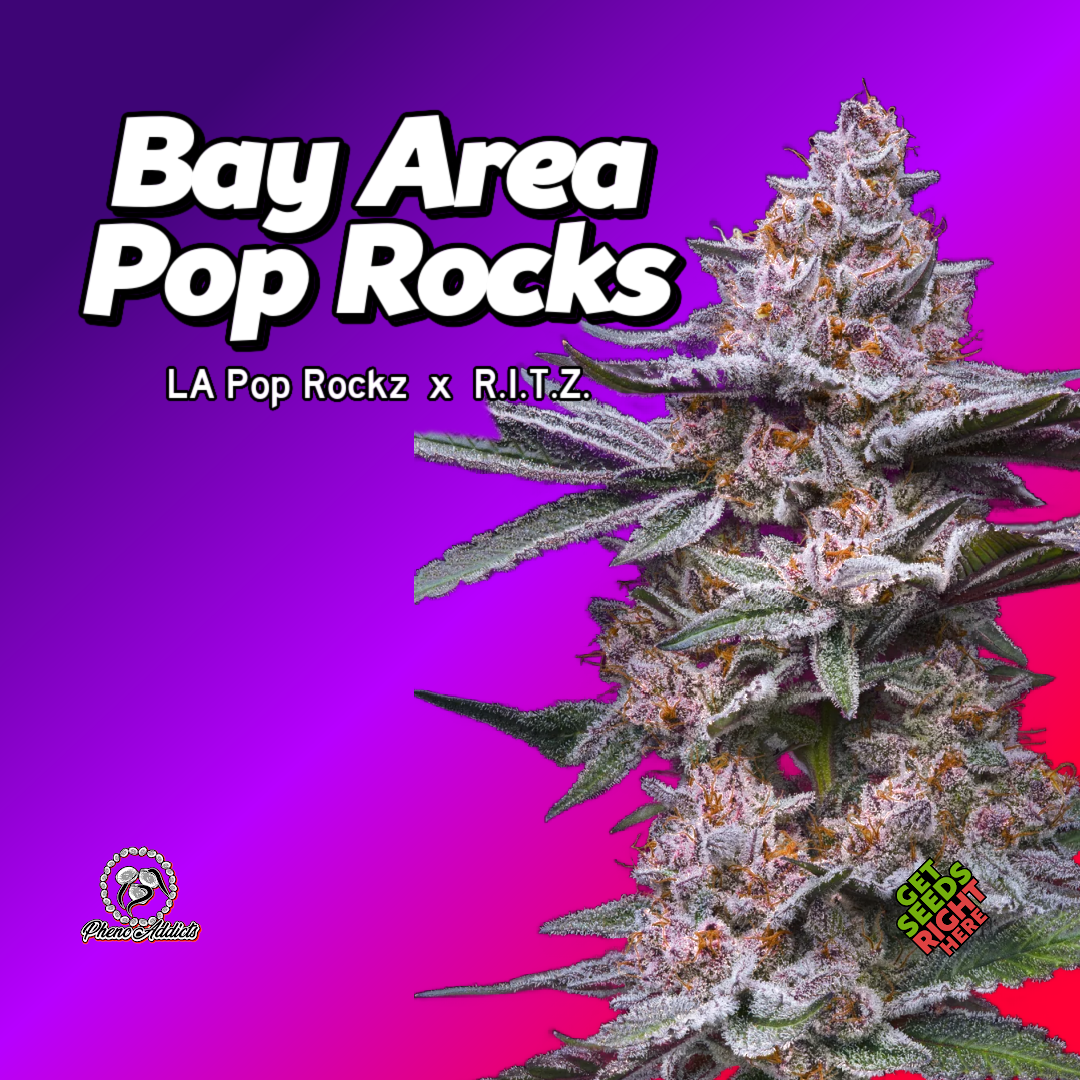 Bay Area Pop Rocks perfectly captures what West Coast hybrid weed is about: bold terps, elite bag appeal, and balanced potency. It’s easy to grow, hash-friendly, and visually stunning — a must-have marijuana plant for both extractors and flower connoisseurs. With its candy gas fusion and heavy resin output, this cut proves Pheno Addicts knew exactly what they were doing when they paired LA Pop Rocks and R.I.T.Z.
