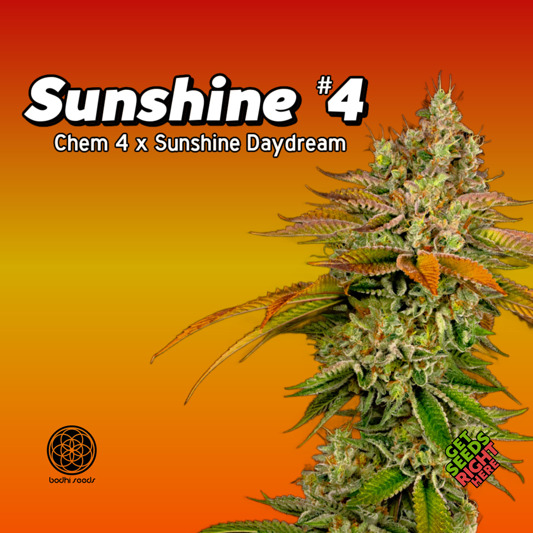 Who bred Sunshine #4? Bodhi Seeds created it from Chem #4 × Sunshine Daydream.